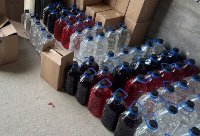 Під час проведення слідчих дій вилучили великі об'єми етилового спирту та підготовлених сумішей для виготовлення фальсифікату