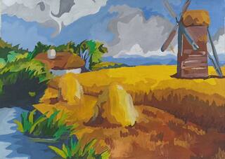 Юна мисткиня представила роботу «Літній ранок», виконану у техніці гуаші на папері