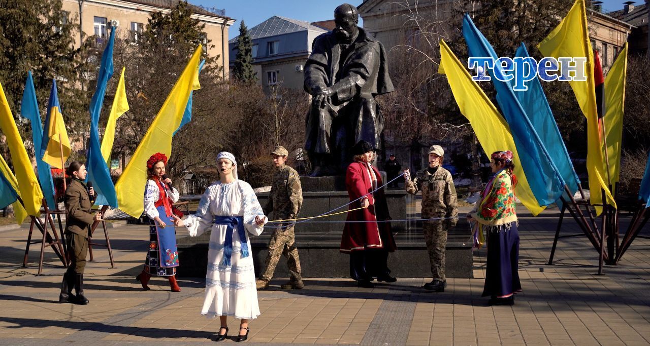 Десятки людей 9 березня зібралися на літературно-музичну імпрезу біля пам’ятника Великому Кобзарю у Тернополі