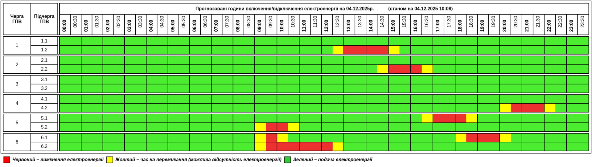 Згідно з вказівкою «Укренерго» 4 грудня на території Тернопільської області діятиме Графік погодинних відключень (ГПВ). Про це повідомили у пресслужбі «Тернопільобленерго».