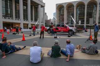 - Йшов вчора повз Лінкольн-центр і бачу явно якась двіжуха намічається. Спочатку розфарбований фургончик приїхав і став там, де машинам їздити взагалі не можна, потім народ почав збиратися. Виявилося, що це акція Нью-Йоркського філармонічного оркестру, музиканти якого грають в різних районах міста, можна сказати «з коліс». Десь хвилин за 20 встановили звук і світло, і півгодини грали для всіх присутніх глядачів. Місце де виступатимуть, як я зрозумів, анонсується в останній момент, а самі виступи завжди нетривалі, щоб не збирати великого натовпу. Мені просто пощастило, що я проходив повз, інакше б взагалі не дізнався, що таке в Нью-Йорку буває, - написав Denis Fraevich у Facebook.