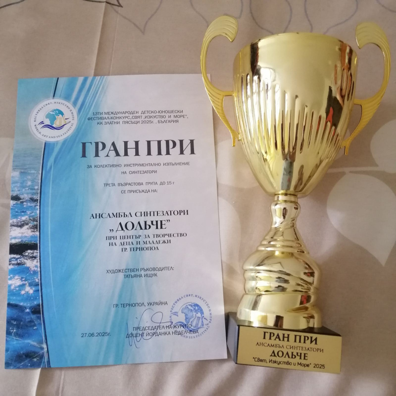 Ансамбль синтезаторів «Дольче» Центру творчості дітей та юнацтва Тернополя (керівниця - Тетяна Іщук) здобув Гран-прі на міжнародному конкурсі-фестивалі «Світ. Мистецтво. Море», що проходив в Болгарії. Про це повідомили на сайті міської ради.