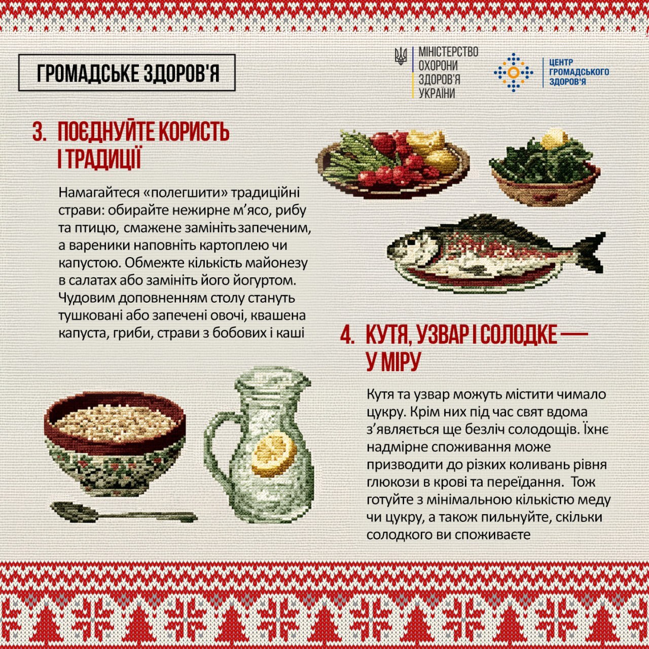 Та деякі страви можуть містити багато олії (смажені гриби чи риба), простих вуглеводів (кутя з великою кількістю меду або цукру) або солі (соління, мариновані овочі).
