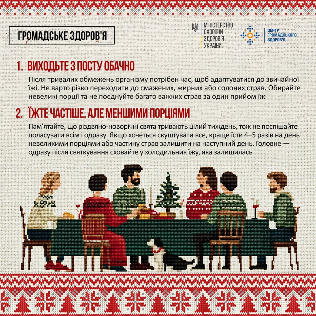 На Святвечір, Різдво чи в Новорічну ніч важливо пам’ятати про міру в їжі, особливо після періоду посту, адже пісне не завжди означає дієтичне, повідомляють у пресслужбі Міністерства охорони здоров’я України.