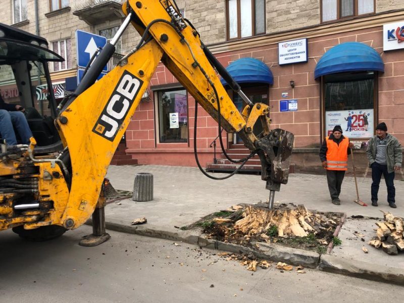 Як відомо, нині на вулиці Листопадовій, що біля Тернопільської міської ради, викорчовують пні старих дерев, а на їхньому місці планують висадити нові, молоді червонолисті клени.