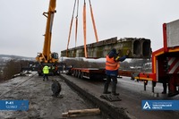 Зараз на шляхопроводі підрядна організація виконує фрезерування покриття і демонтаж балок прогонової будови. Через те, що під об’єктом залізниця продовжує функціонувати, роботи виконуються в перервах між рухом потягів.