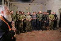 Військовослужбовці приходять, щоб поклонитися найдавнішій плащаниці зі святих місць Зарваниці, яку привезли в підрозділи капелани-волонтери з Тернопільщини