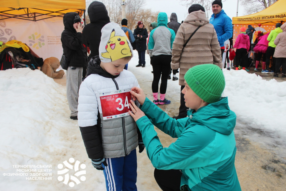 Традиційний забіг «Закохані у біг» відбувся на набережній Тернопільського ставу 14 лютого. Про це повідомили на сайті міської ради.