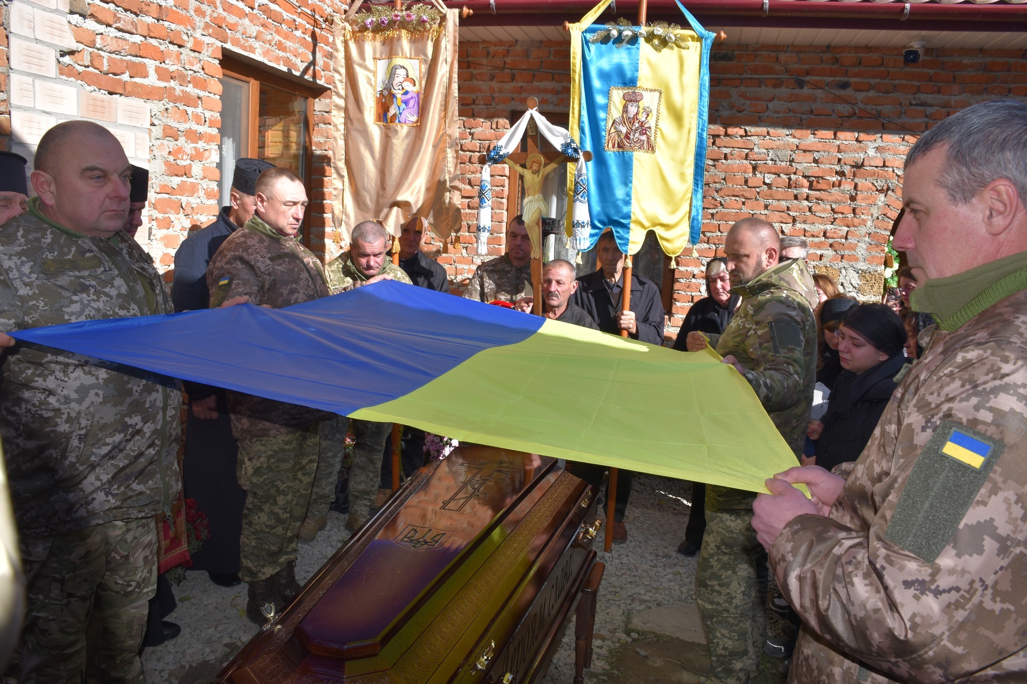 Під звуки оркестру, зі салютом та Державним Прапором, яким була вкрита домовина, громада провела свого Героя в останню путь.