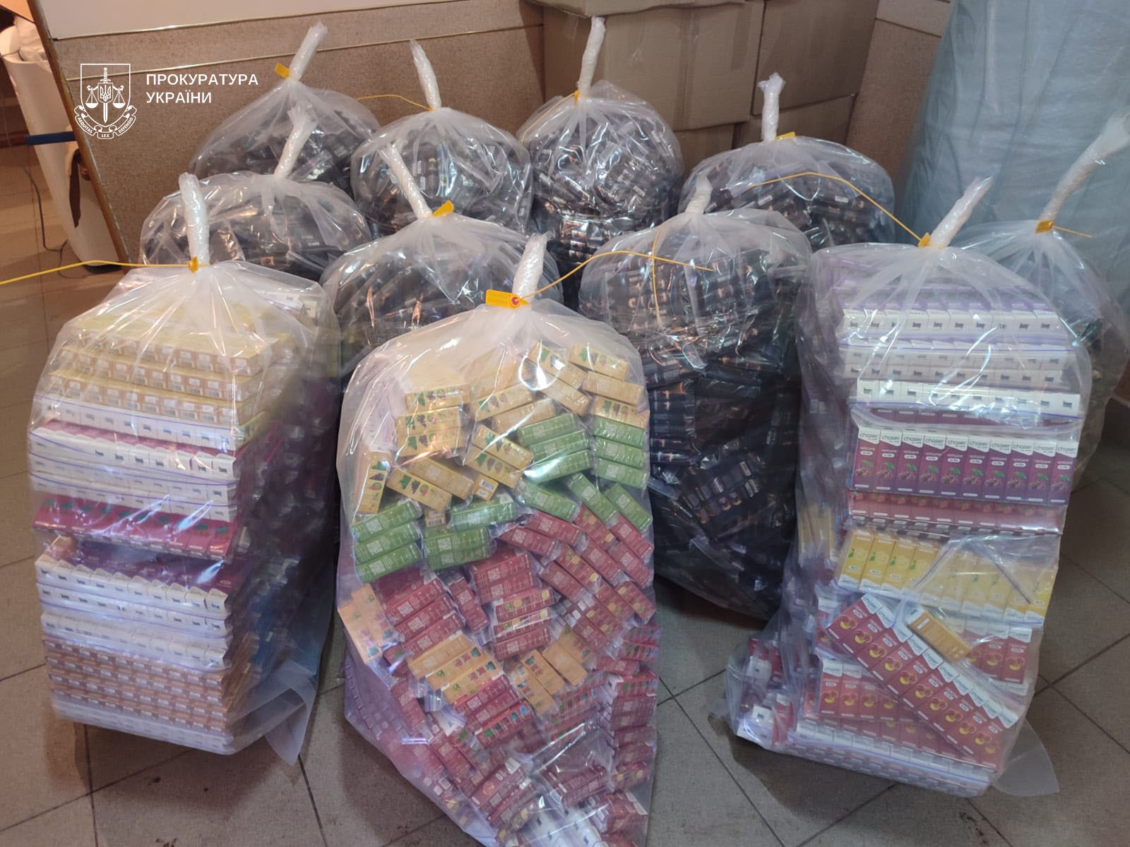 Під час 26 санкціонованих обшуків на території трьох областей правоохоронці вилучили незаконно виготовлену продукцію та компоненти до неї, ринковою вартістю понад 5,6 млн грн. Серед вилученого: 45 200 доларів США, 7 590 євро, 693 800 гривень, 100 фунтів стерлінгів, 53 529 флаконів харчових ароматизаторів брендів Phantom та Chaser, 20 100 ампул нікотину, 14 093 флакони та ампули гліцерину, а також комп’ютерна техніка, телефони та автомобілі, що могли використовуватися у протиправній діяльності.