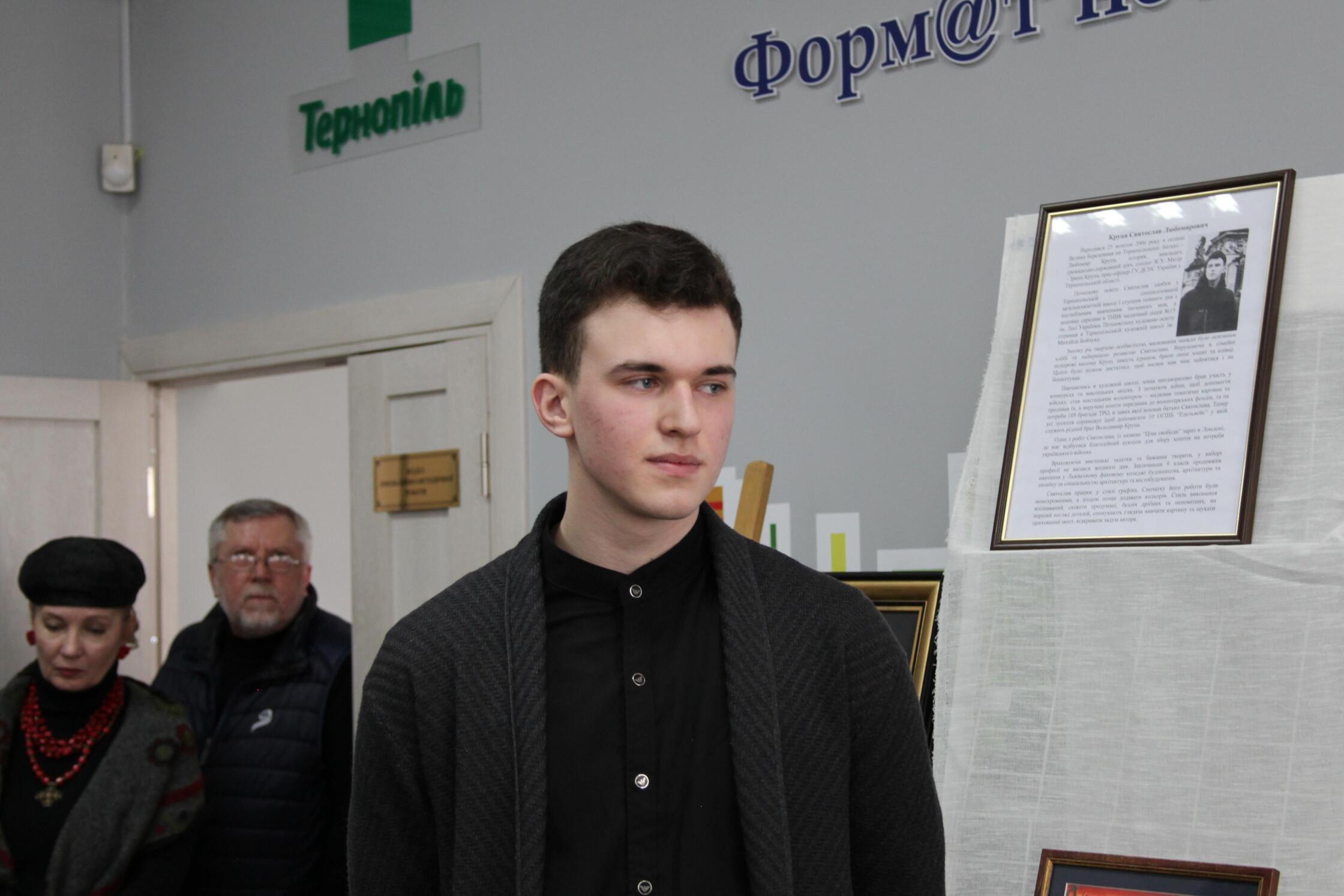 Виставку картин «Ціна свободи» 18-річного художника Святослава Крупи відкрили у Тернополі 25 березня. Роботи молодого митця можна побачити у Центральній міський бібліотеці щонайменше протягом тижня. Загалом на виставці 17 картин переважно на військову тематику, розповів Святослав Крупа.