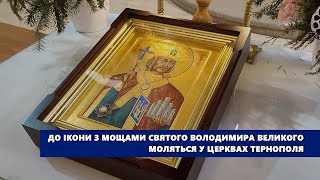 Ікона з мощами Святого рівноапостольного князя Володимира Великого перебуває у Тернополі. Щодня святиню перевозять з одного храму міста до іншого. А згодом до неї зможуть помолитися віряни різних громад Тернопільщини. 27 січня ікону привезли до храму Успіння Пресвятої Богородиці.