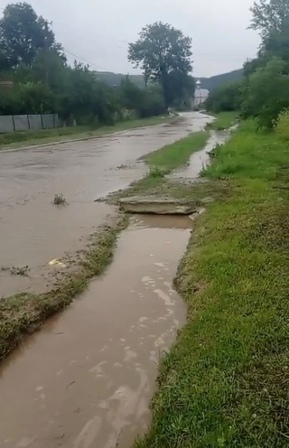 Так, Наталія Калан, показала, як сільська дорога буквально перетворилася на річку: