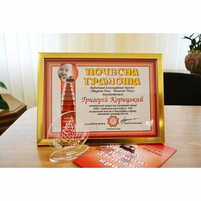 Заслужений лікар України Григорій Корицький отримав почесну грамоту цього благодійного проекту.