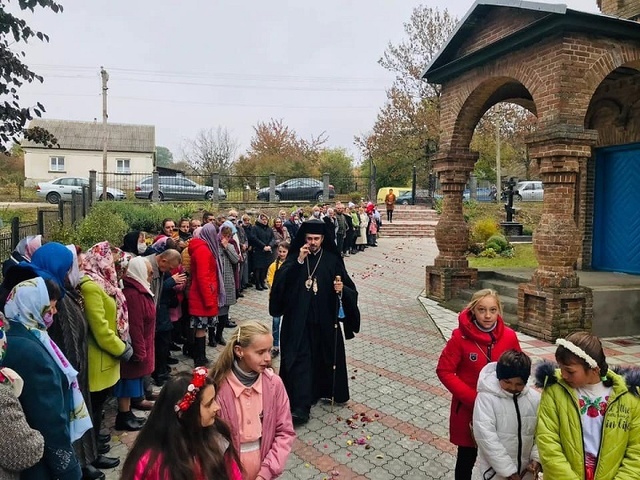 Архієрей разом із численним духовенством відслужив Літургію у храмі, а потім літію біля могили священика Володимира Малицького. Також привітав духовенство і мирян зі святом Покрова Пресвятої Богородиці та ювілеєм храму і закликав на присутніх Господнє благословення.