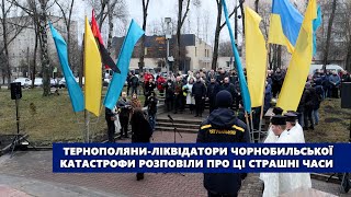 Пам’ять ліквідаторів катастрофи на Чорнобильській атомній електростанції вшанували в Тернополі 12 грудня. Біля пам'ятника жертвам Чорнобильської трагедії зібралися ліквідатори з Тернопільщини, їхні рідні та небайдужі тернополяни, які поділилися спогадами про ці страшні часи та поклали квіти до монумента. Священнослужителі помолилися за усіх, чиє життя забрала ця аварія, та вшанували їх хвилиною мовчання.