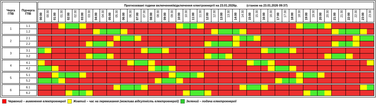 Публікуємо графік, який відомий станом на 23 січня 09:37 год: