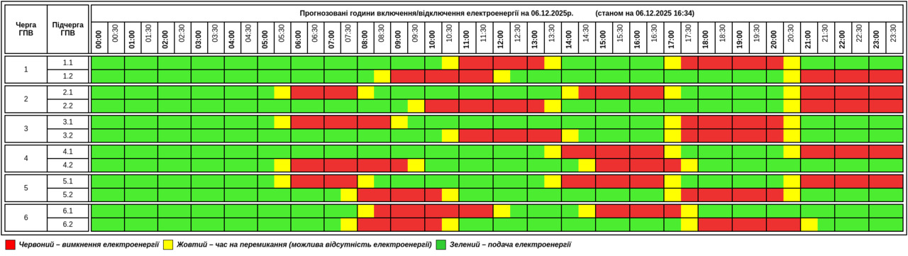 Публікуємо графік, який відомий станом на 16:34: