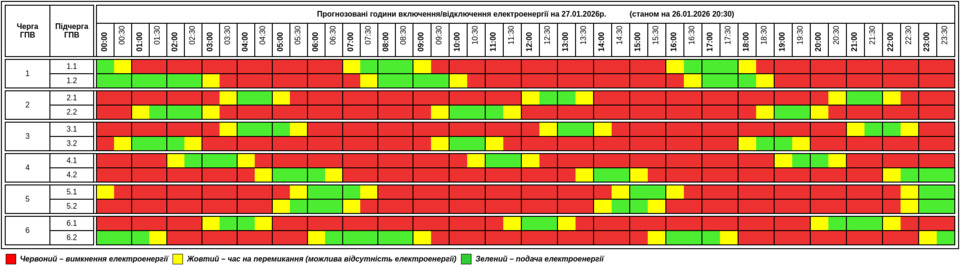 Публікуємо графік, який відомий станом на вечір 26 січня: