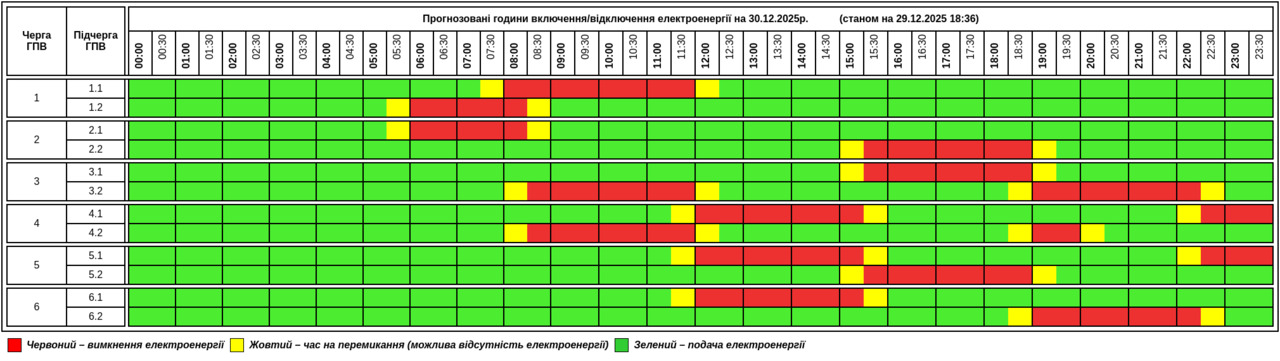 Публікуємо графік, який відомий станом на вечір 29 грудня: