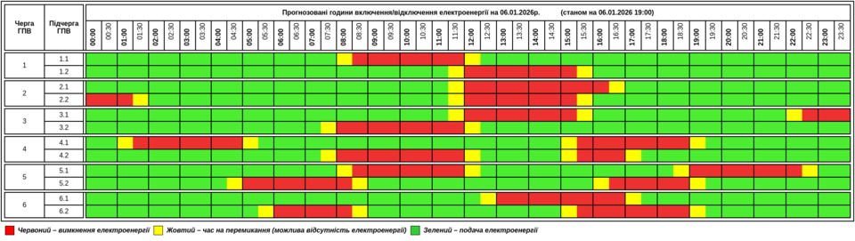 Публікуємо графік, який відомий станом на 19:00: