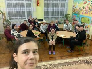 Тож задум дівчат був гарною ідеєю, аби розрадити переселенців. На першій зустрічі клубу було 11 дорослих учасників, 4 - з Києва, 5 - з Харкова і 2 - з Бахмута. Усі познайомились, поговорили, пограли в ігри й порухались.