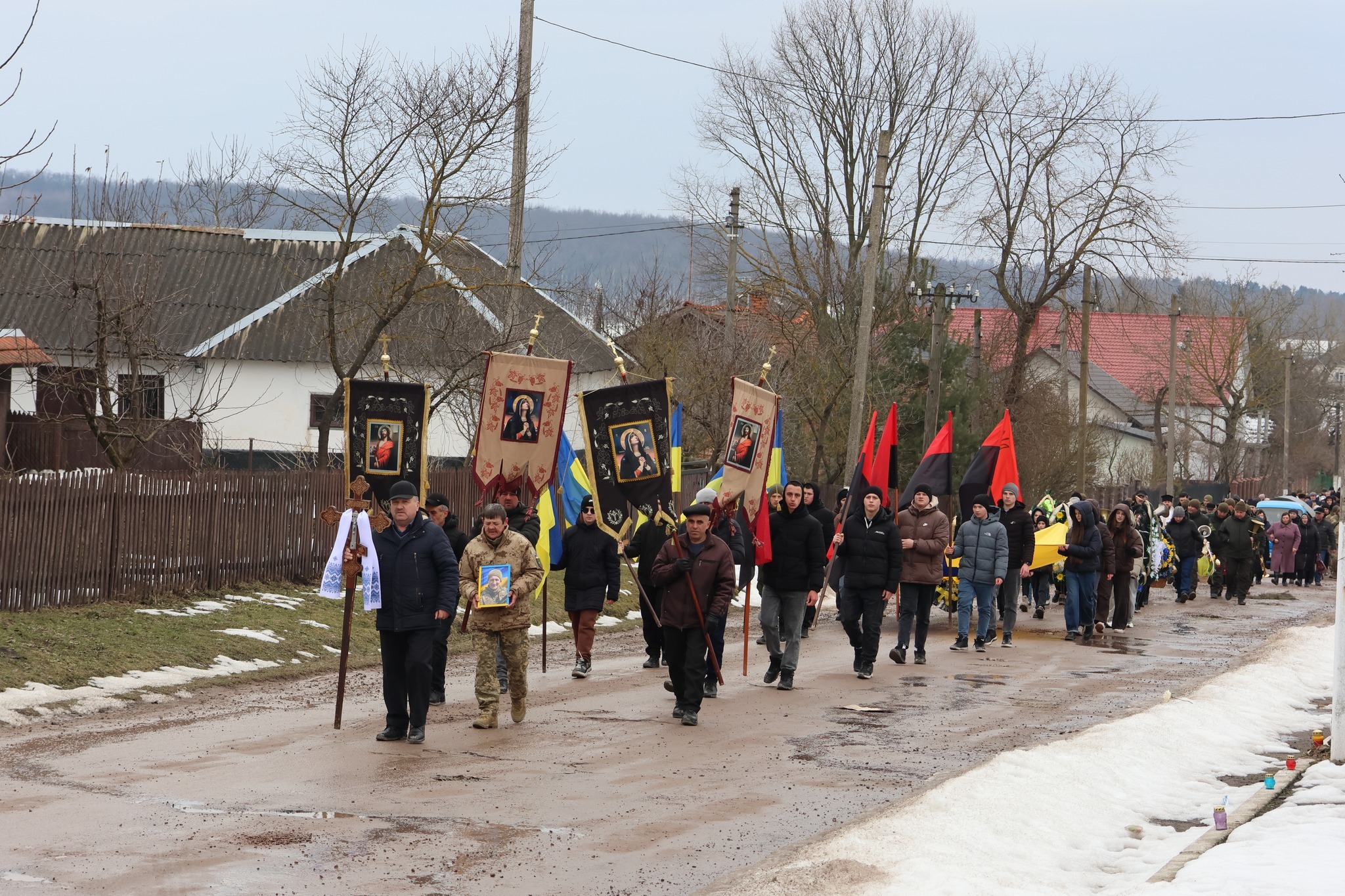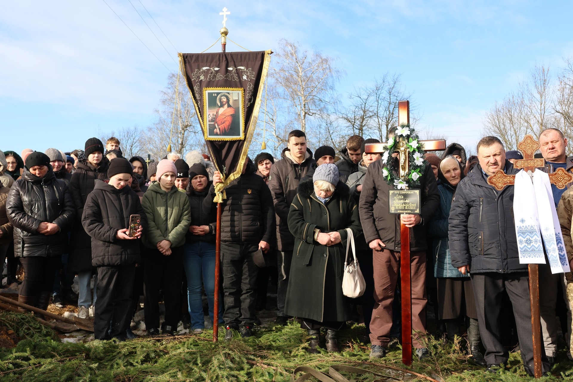 Після прощання на подвір’ї жалобна процесія рушила через усе село. Односельці навколішки проводжали Героя до храму. Поховали воїна на місцевому кладовищі під звуки військового салюту та Державного Гімну України.