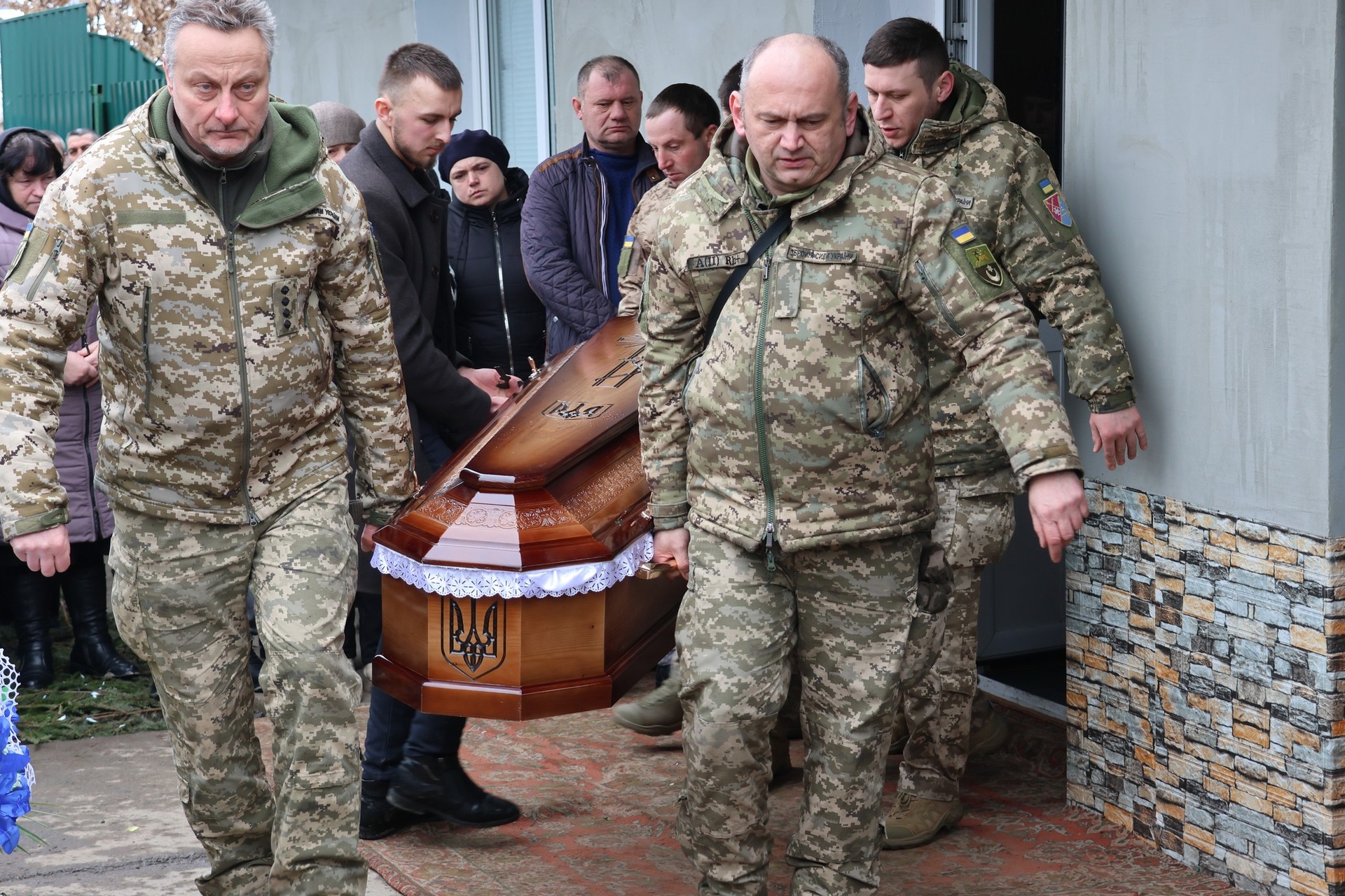 Люди чисельно зійшлися на подвір’я воїна, щоб віддати шану полеглому. Прощання розпочалося біля рідної домівки, де він проживав разом із дружиною та виховував дітей.