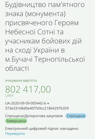 Будівництво такого пам’ятного знаку обійшлось у 802417,00 грн.