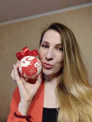 — Мені захотілося замінити заводські масові пластмасові кульки на такі ось майже живі прикраси, бо ж кожна неповторна, тому ніби має своє життя, — розповідає Катерина. — Мій перший виріб надихнув — вишила на новорічній кульці символ наступного року — бичка червоного кольору. До речі, малюнок бичка обрав син (він тілець за гороскопом). Оскільки до того не мала досвіду роботи із такими рукотворами, тому багато експериментувала, поки все вийшло так, як я хотіла. Ця іграшка стала для мене, наче рідна — вклала у неї багато енергії та праці. Вона прикрасить наш дім і цьогоріч. Моя сім'я відмовилися від домашньої ялинки, тому іграшкою декоруємо світильник (сміється — І.В.).