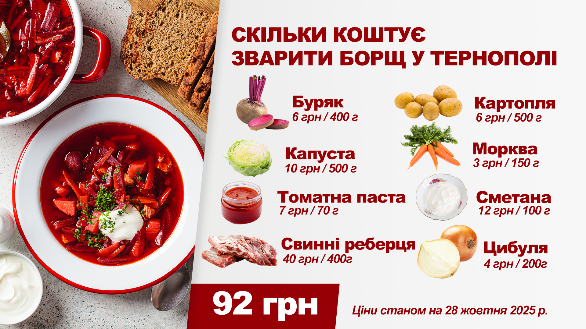 Індекс борщу-2025 у Тернополі: скільки цьогоріч коштує приготувати страву (відео)