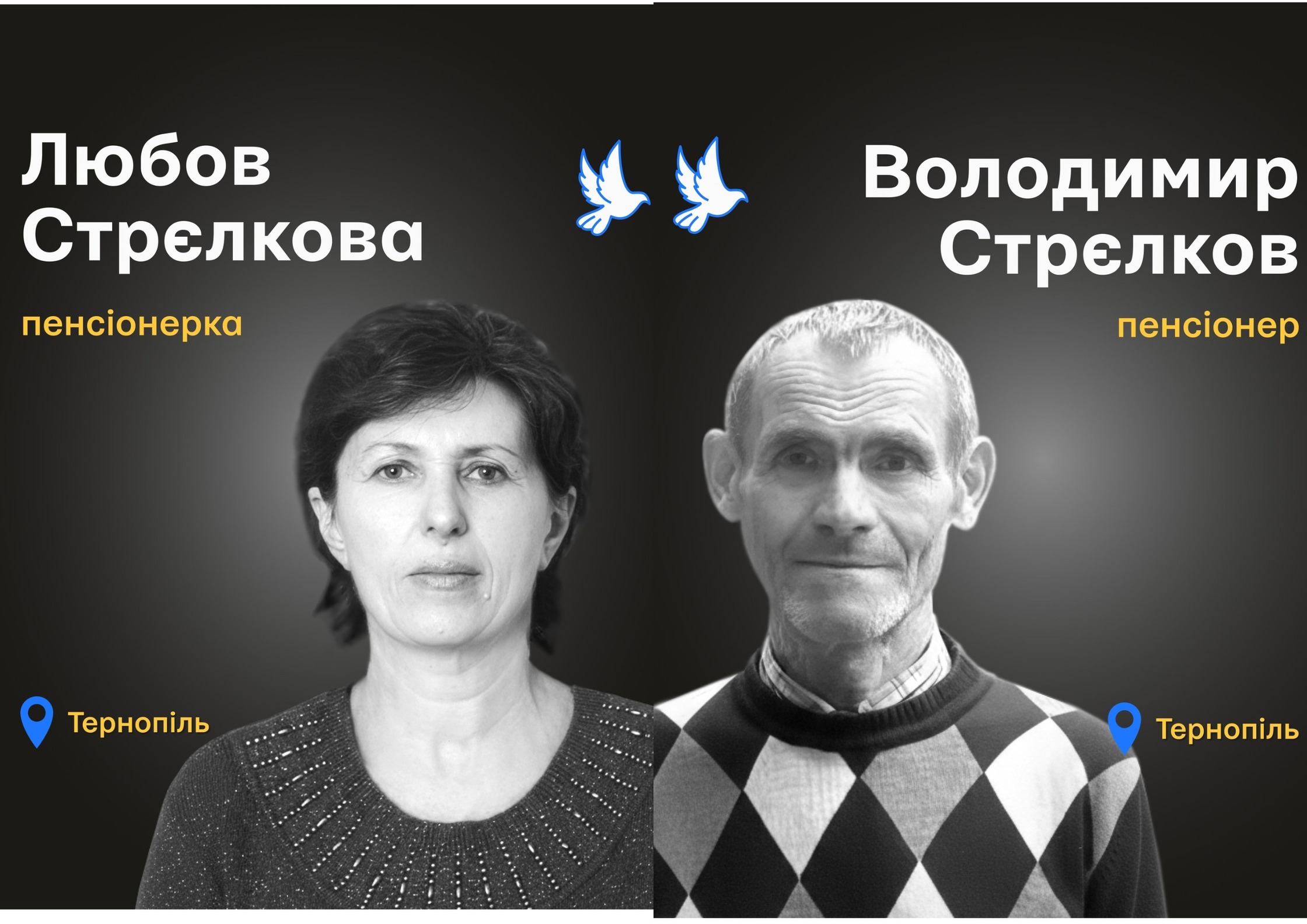19 листопада 2025 року внаслідок російського ракетного обстрілу Тернополя загинули 65-річна Любов Стрєлкова, її 64-річний чоловік Володимир та їхній 21-річний онук Андрій. Комбінована атака ворога того дня забрала життя 38 людей. Історію опублікувала спільнота «Меморіал: вбиті росією», яка вшановує цивільних, які стали жертвами російської агресії.
