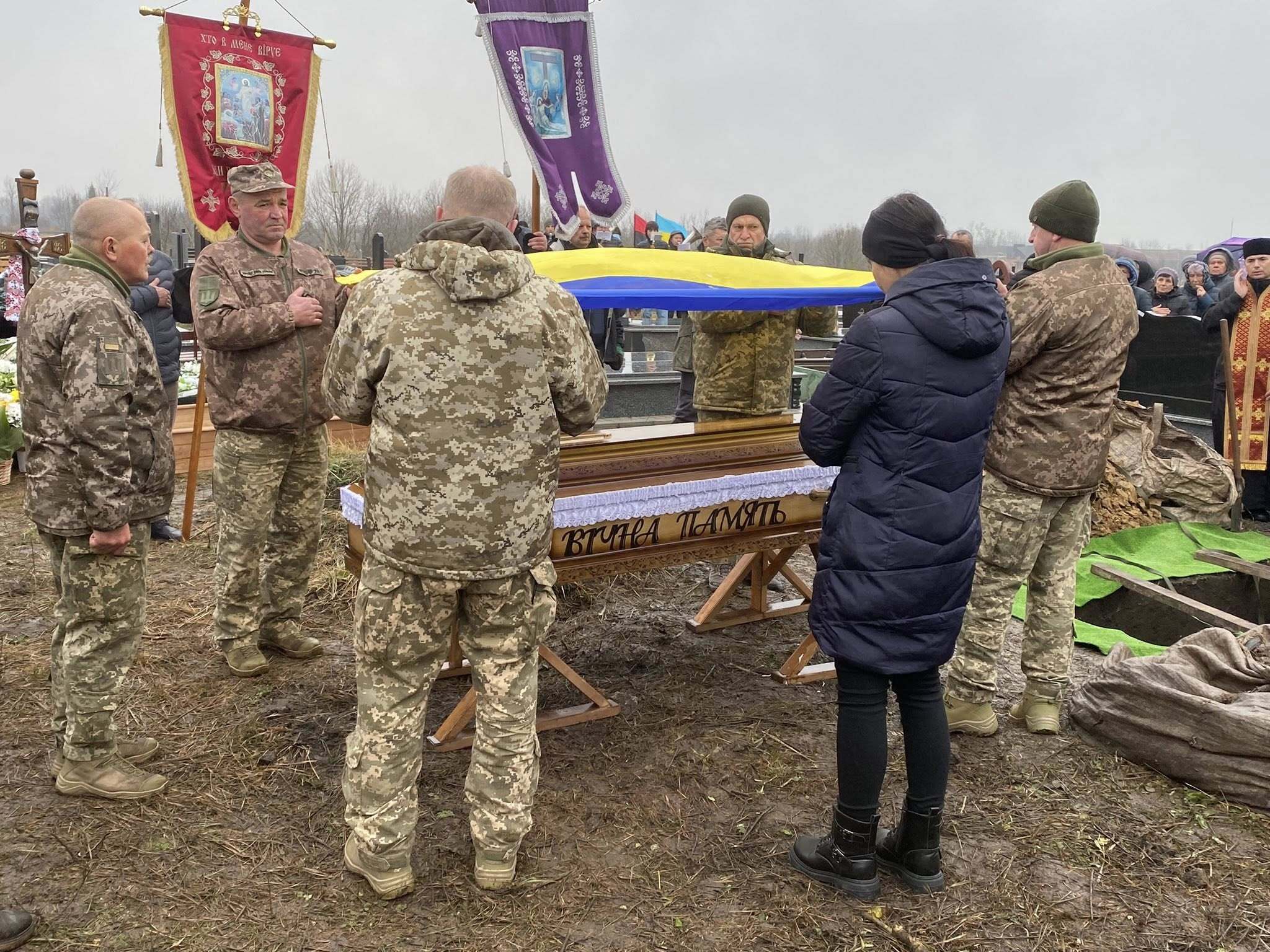 Попрощатися із Захисником прийшли його рідні та близькі, друзі, сусіди, представники влади та небайдужі громадяни. У глибокій скорботі залишились батьки, дружина, донька та син.