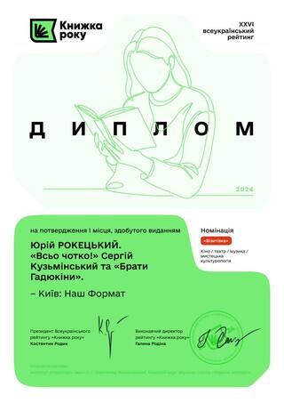 Книга «Всьо чотко» Сергій Кузьмінський і «Брати Гадюкіни» авторства Юрія Рокецького перемогла у Всеукраїнському рейтингу «Книжка року-2024» у номінації- «Візитівка». Про це автор повідомив на своїй сторінці у фейсбуці.