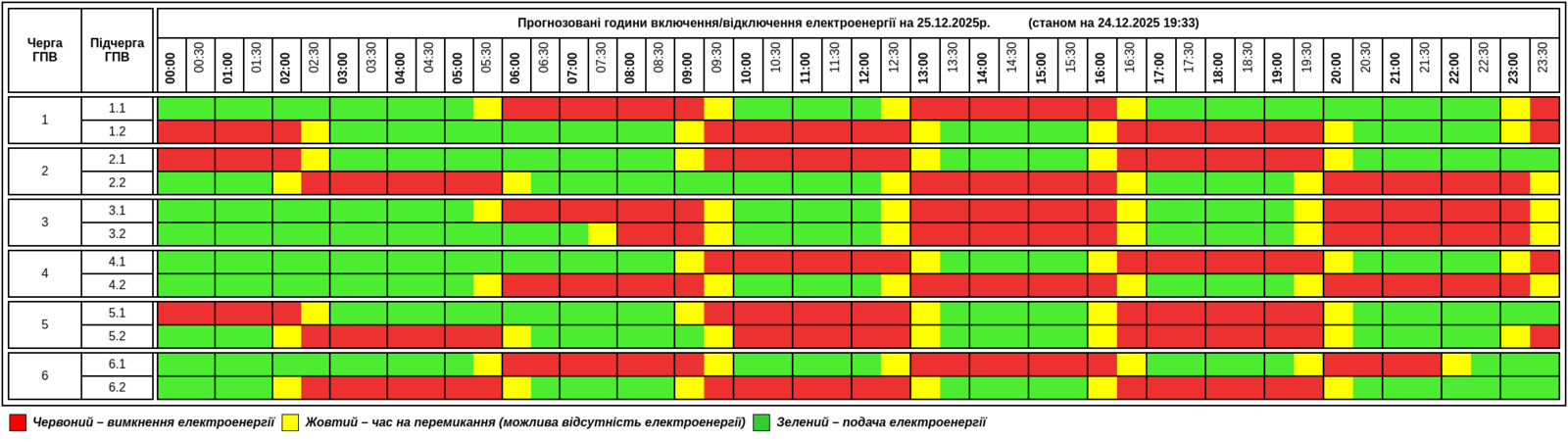 Публікуємо графік, який відомий станом на вечір 24 грудня: