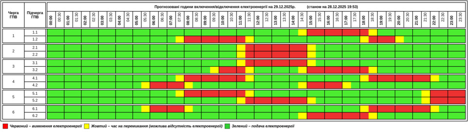 Публікуємо графік, який відомий станом на вечір 28 грудня: