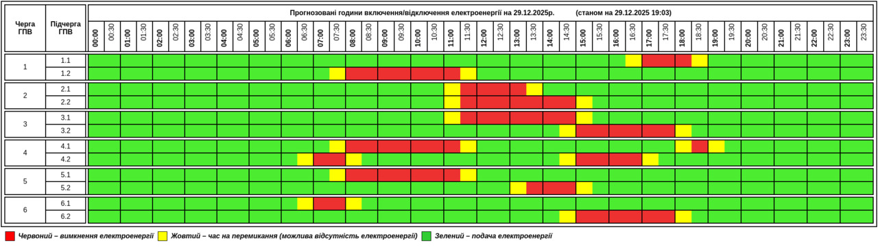 Графік протягом доби може змінюватися. Просимо слідкувати за оновленнями на нашому офіційному сайті. Дякуємо споживачам за розуміння ситуації та раціональне використання електроенергії, – йдеться в повідомленні.