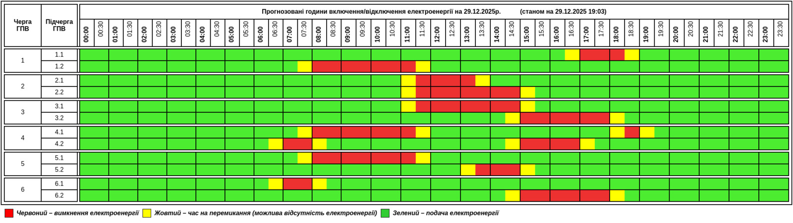 Згідно з вказівкою «Укренерго», 29 грудня на території Тернопільської області діятиме Графік погодинних відключень (ГПВ). Про це повідомили у пресслужбі «Тернопільобленерго».
