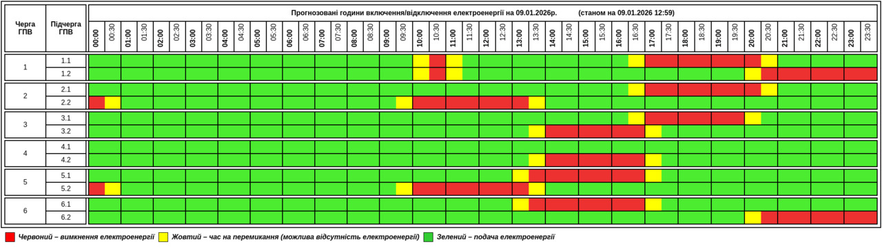 Публікуємо графік, який відомий станом на 9 січня 12:59 година: