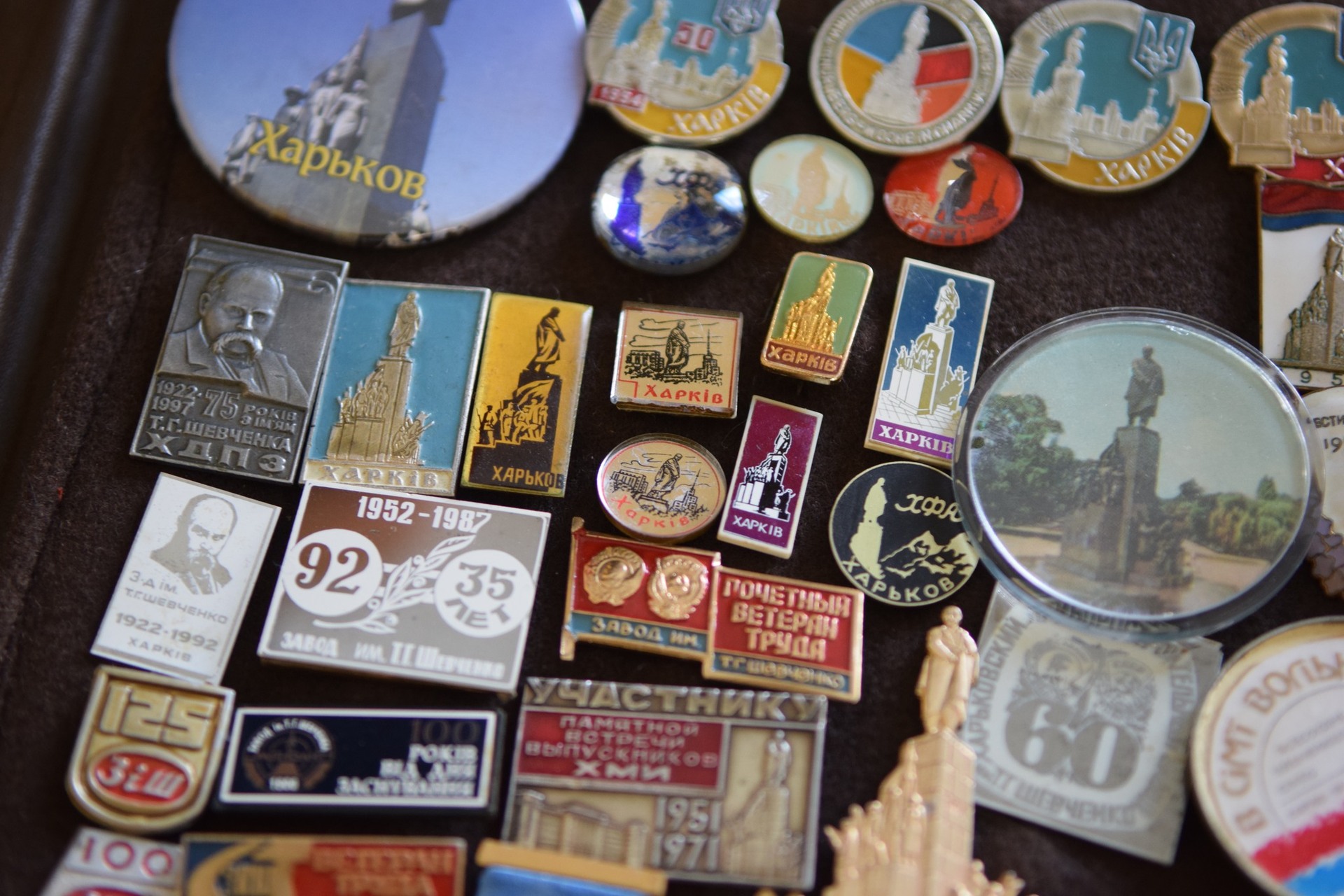 Колекціонер розповів, що перші два значки отримав у 1963 році від батька. Зараз у його зібранні понад 600 експонатів – металеві, дерев’яні, пластикові. Є значки з різних регіонів України, а також із Канади, США та Франції. Найстаріший датований 1914 роком.