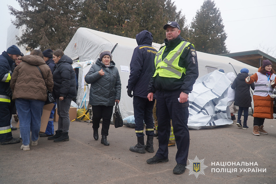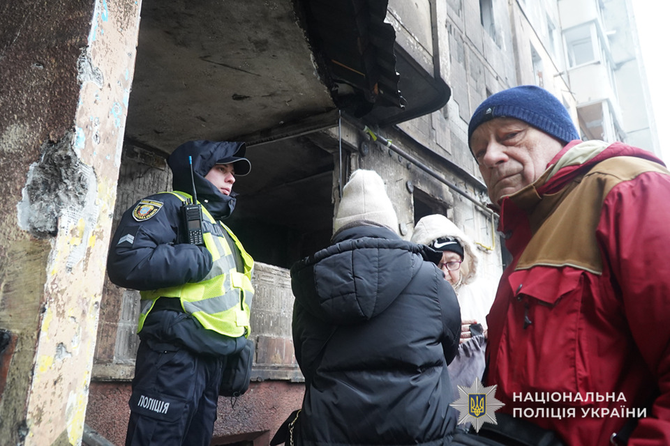 Правоохоронці супроводжують людей до вцілілих квартир, аби вони могли забрати свої речі