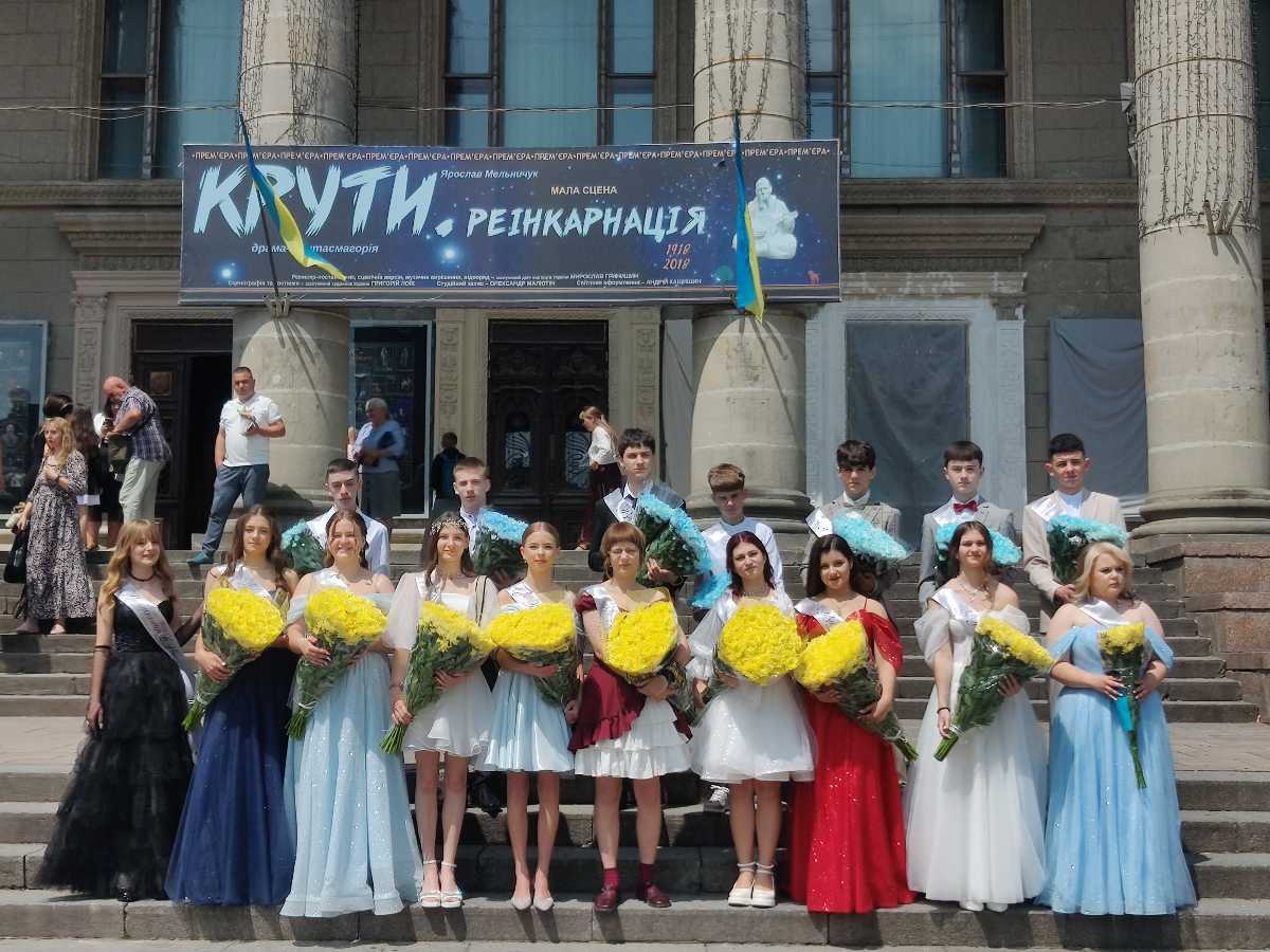 Після офіційної частини у драмтеатрі випускники поклали квіти до портретів полеглих воїнів на алею пам'яті “Незламні”.