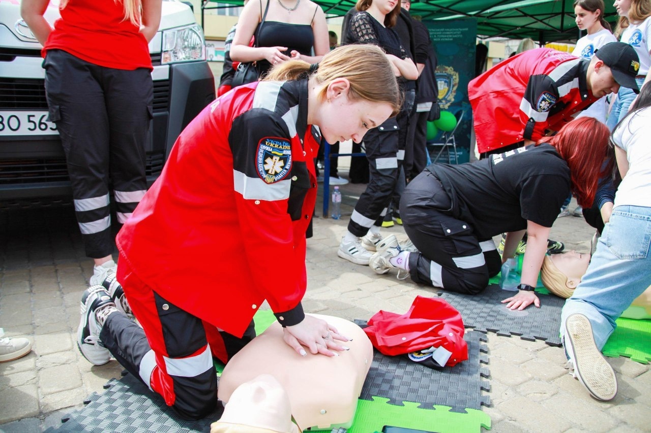 Ми сьогодні приїхали сюди, щоб показати людям, як правильно надавати медичну допомогу: проводити серцево-легеневу реанімацію, вентиляцію легень, зупинку критичних кровотеч за допомогою джгутів, турнікетів і тампонування ран. Підходить дуже багато дітей, цікавляться. Чимало дорослих відкрили для себе те, як правильно надавати медичну допомогу, – каже студентка 1-го курсу Тернопільського національного медичного університету імені І. Я. Горбачевського за спеціальністю “Парамедик” Тетяна Кузьма.