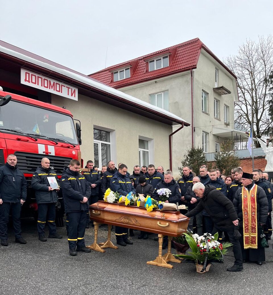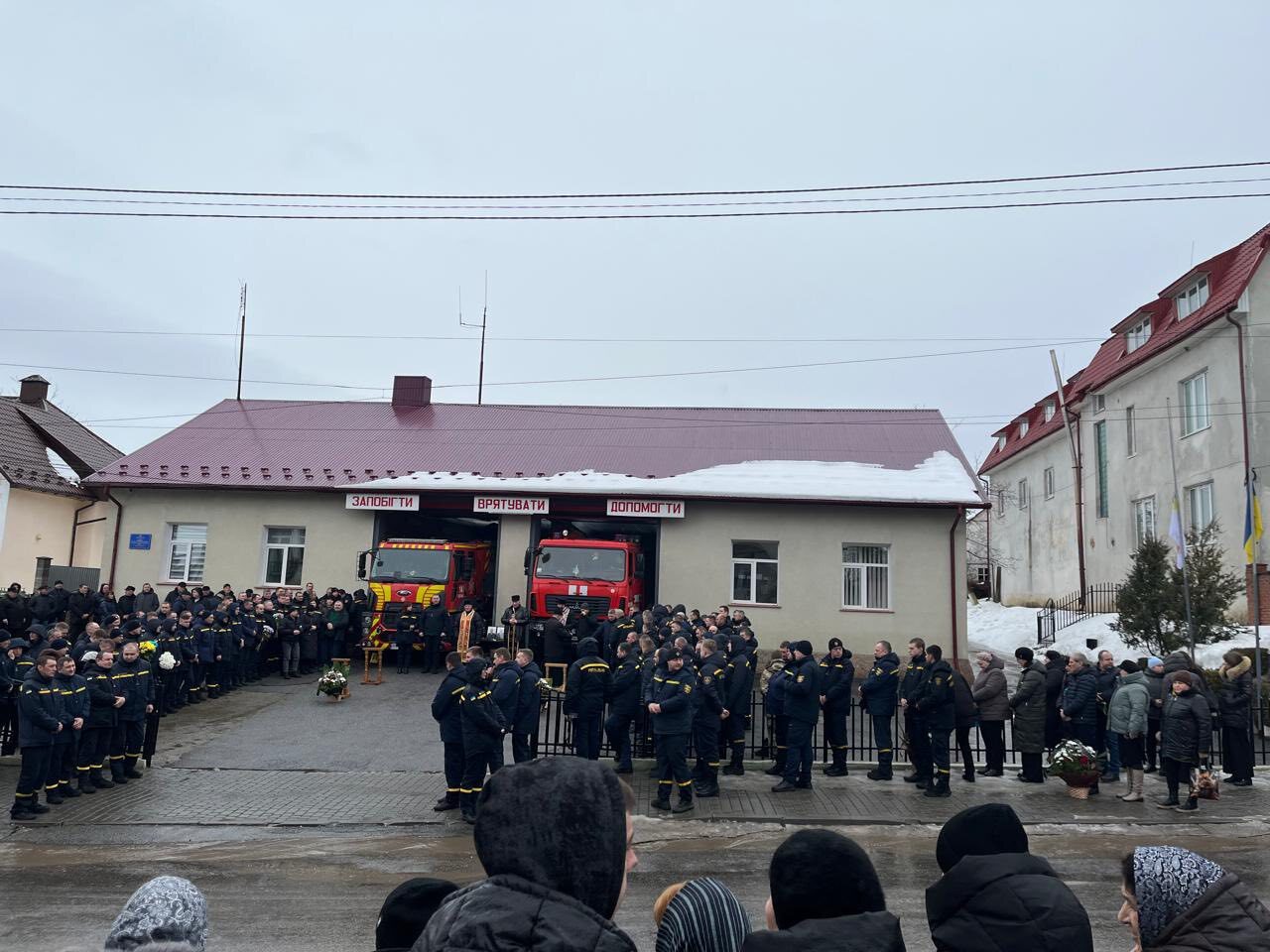 Підгаєцька громада разом із особовим складом рятувальників Тернопільщини прощалися із загиблими рятувальниками Василем Танасишиним та Романом Гнатівим у місцевій пожежній частині. Про це повідомили у пресслужбі громади.