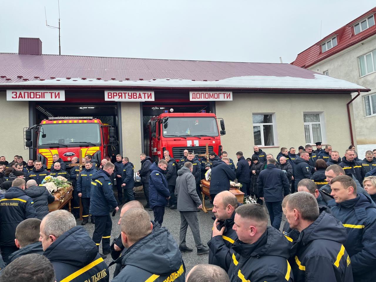 Місто на Тернопільщині прощається з двома загиблими у ДТП рятувальниками (фото)
