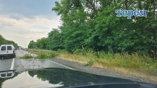 Сильний вітер повалив кілька дерев, які впали прямо на проїжджу частину. Окремі відрізки дороги засипані листям, гіллям та соломою з навколишніх полів.