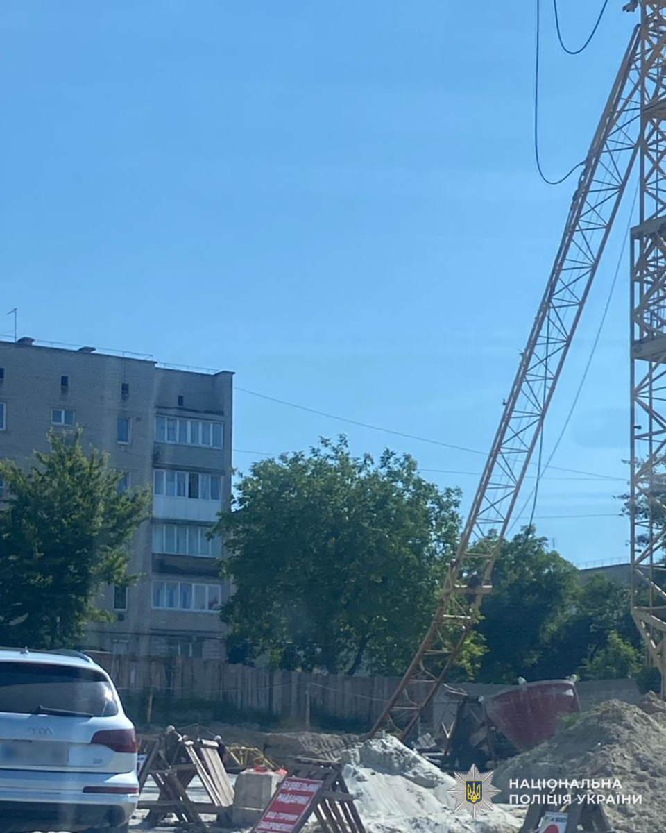 Під час виконання робіт з підвищеною небезпекою на території будівництва багатоповерхового житлового будинку впала стріла баштового крана. Про даний факт очевидці повідомили на спецлінію «102». На місце події виїжджала слідчо-оперативна група Кременецького райвідділу поліції. Про це повідомили у відділі комунікації поліції Тернопільської області.