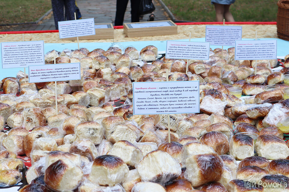 Кожна область була представлена пиріжками з різною начинкою. Відтак Тернопільщина - пиріжки з капустою і грибами.