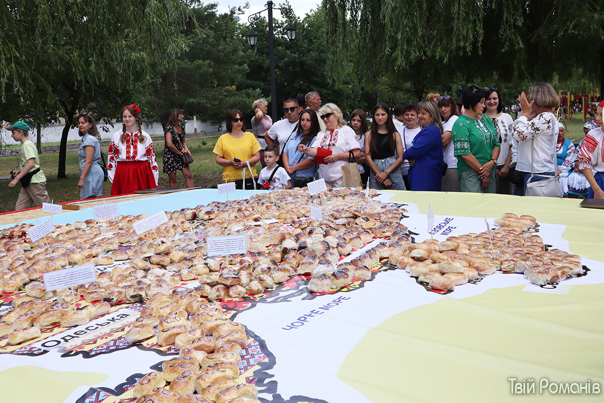 Загалом знадобилося 1500 пиріжків із 27 видами начинок, аби викласти карту України розміром 6,21 м на 4,35. Досягнення офіційно зареєстрували у Книзі рекордів України.