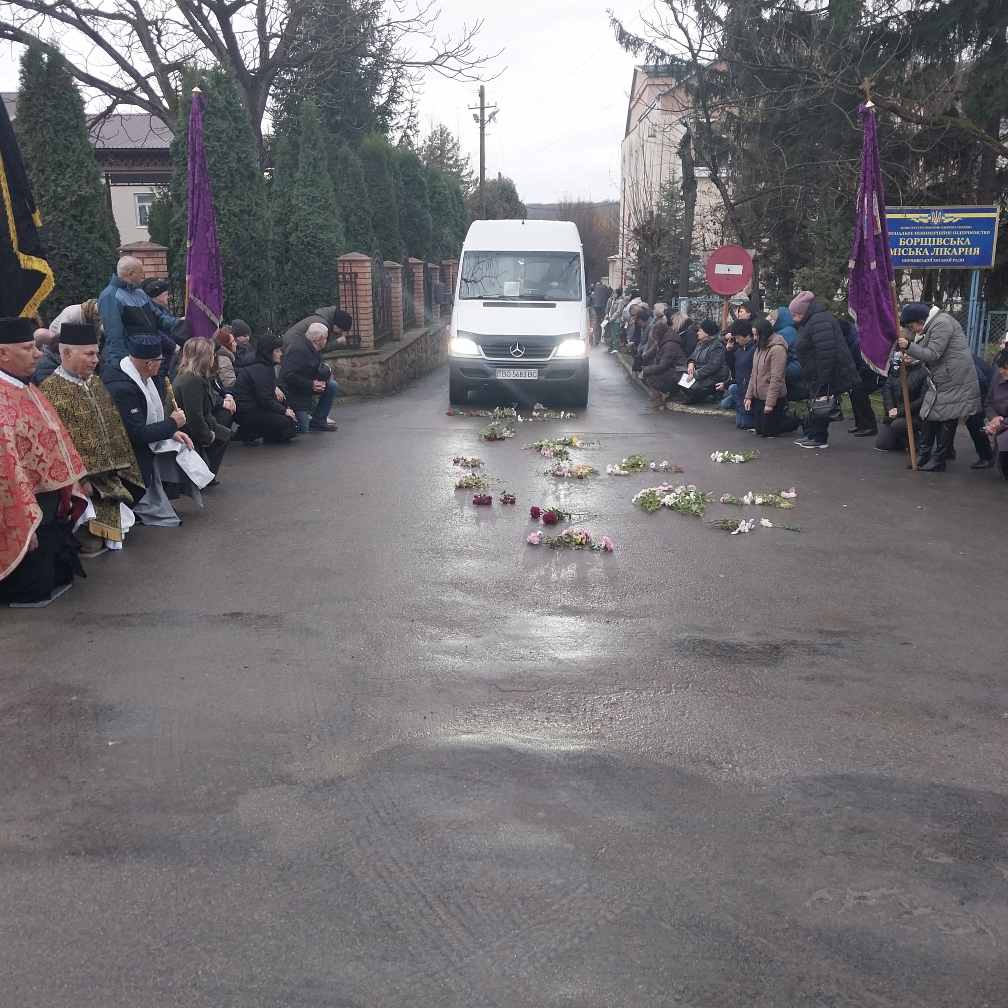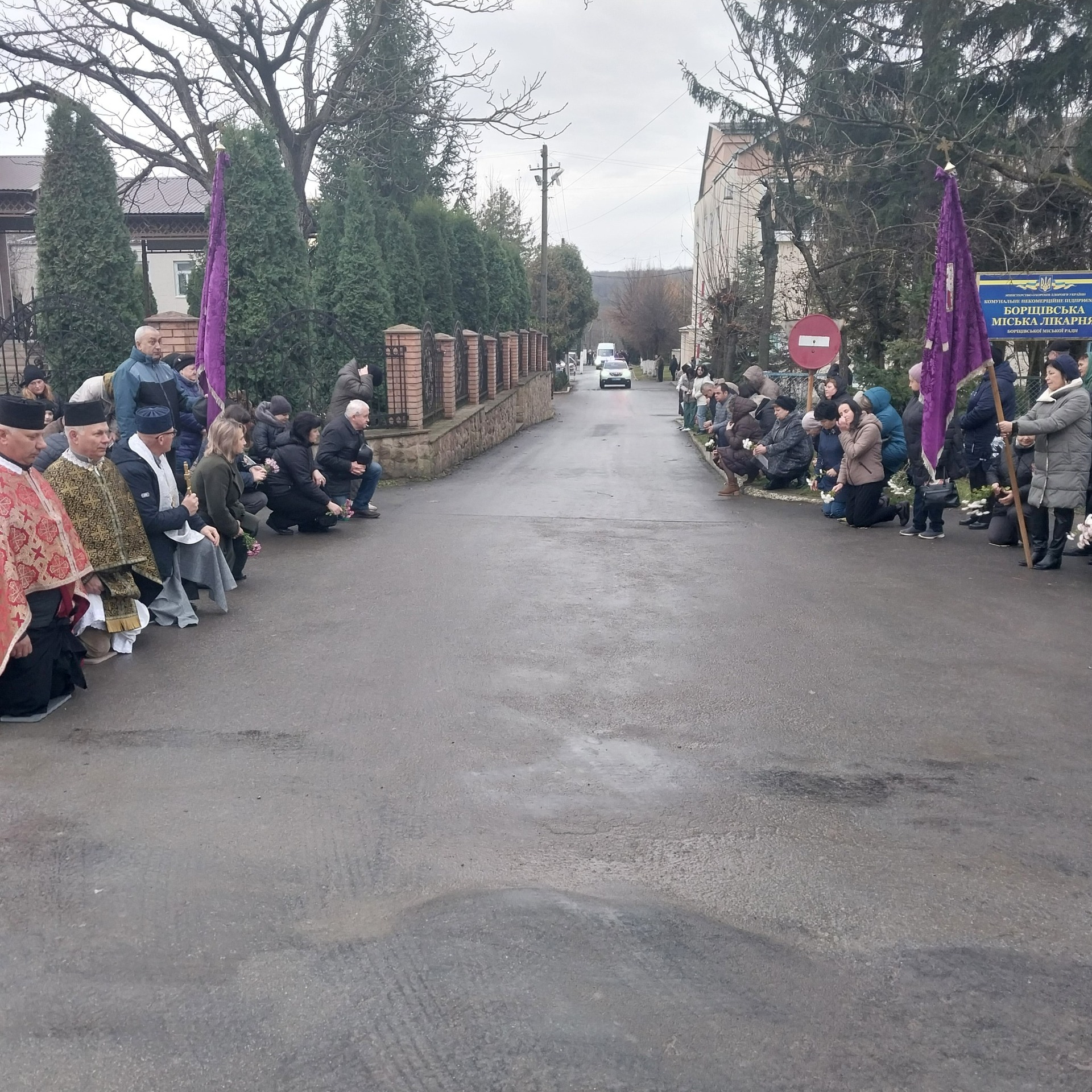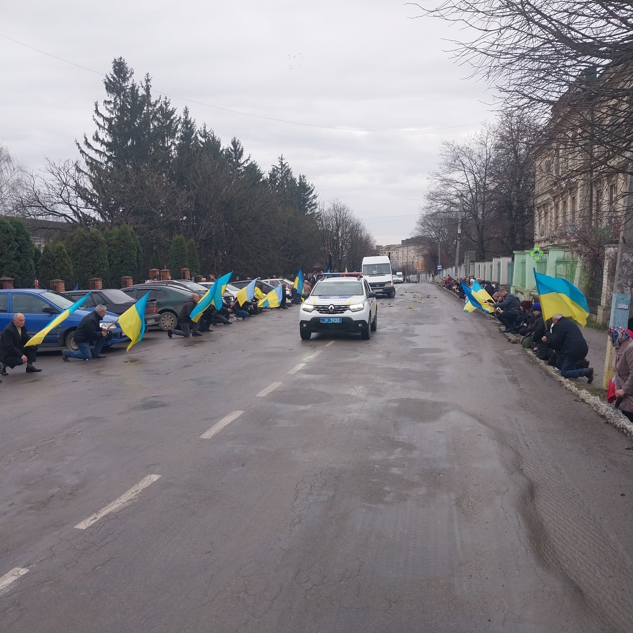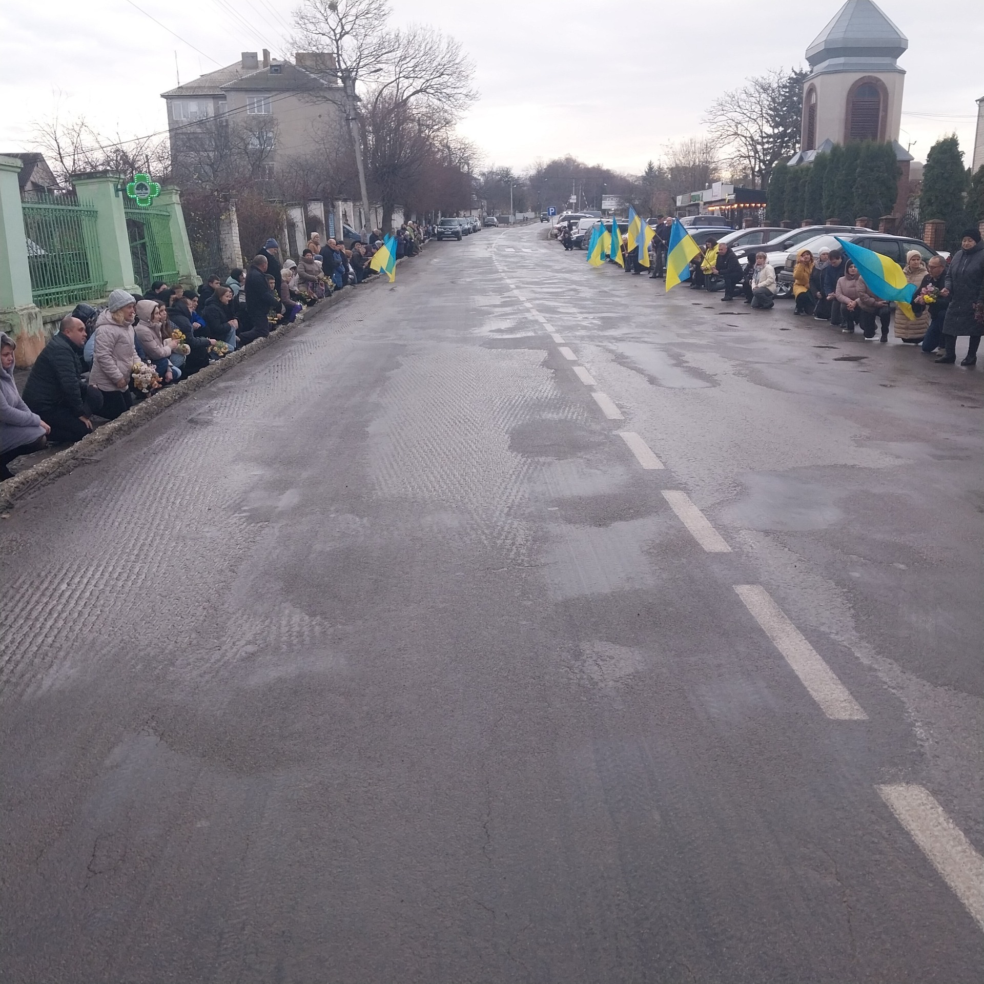 Мешканці громади вийшли на вулиці, щоб навколішки зустріти кортеж із тілом Героя. Люди тримали у руках квіти та державні прапори, молилися разом зі священнослужителями, вшановуючи пам’ять воїна, який ціною власного життя боронив рідну землю.